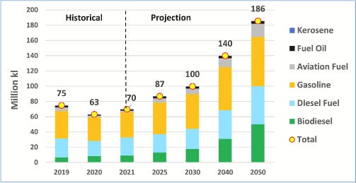 Due to the population increase over time in Indonesia driving fuel demand, there are forecasts for significant increases in biodiesel demand over time: see chart below:
