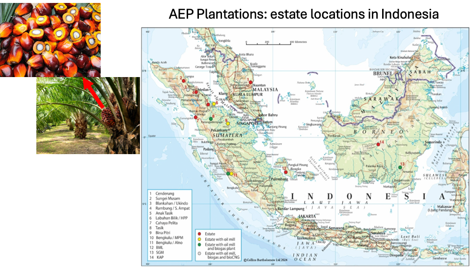 AEP Plantations is a palm oil company, with all operations in Indonesia - the world’s top palm oil producing country: see below. Palm oil is produced from the fleshy fruits of the palm tree, which are processed in mills into crude palm oil (CPO). The palm kernels can also be processed to produce palm kernel oil. This is sold to local buyers or exported.